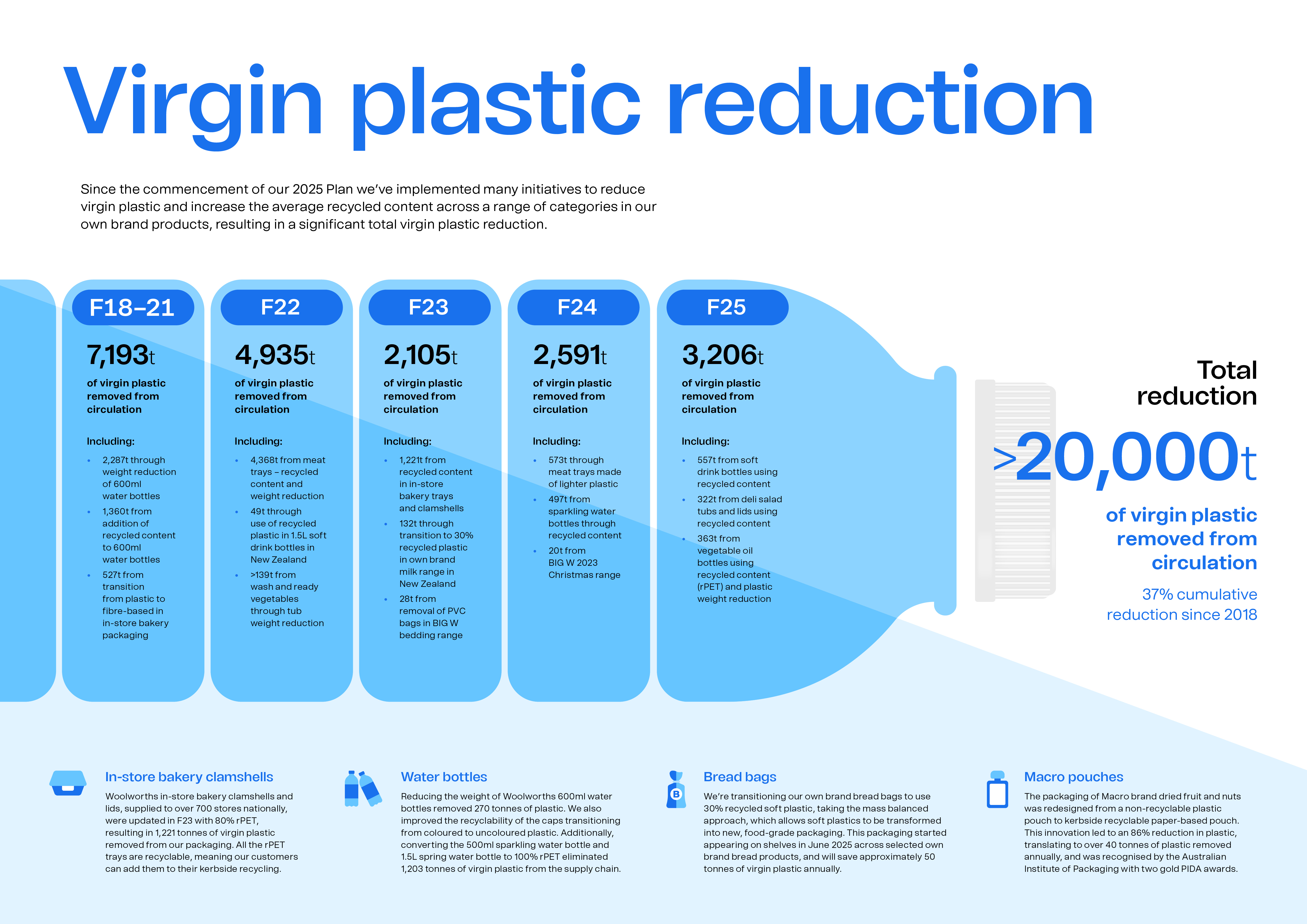 Since the commencement of our 2025 Plan we’ve implemented many initiatives to reduce virgin plastic and increase the average recycled content across a range of categories in our own products, resulting in a significant total virgin plastic reduction - 37% cumulative reduction since 2018.